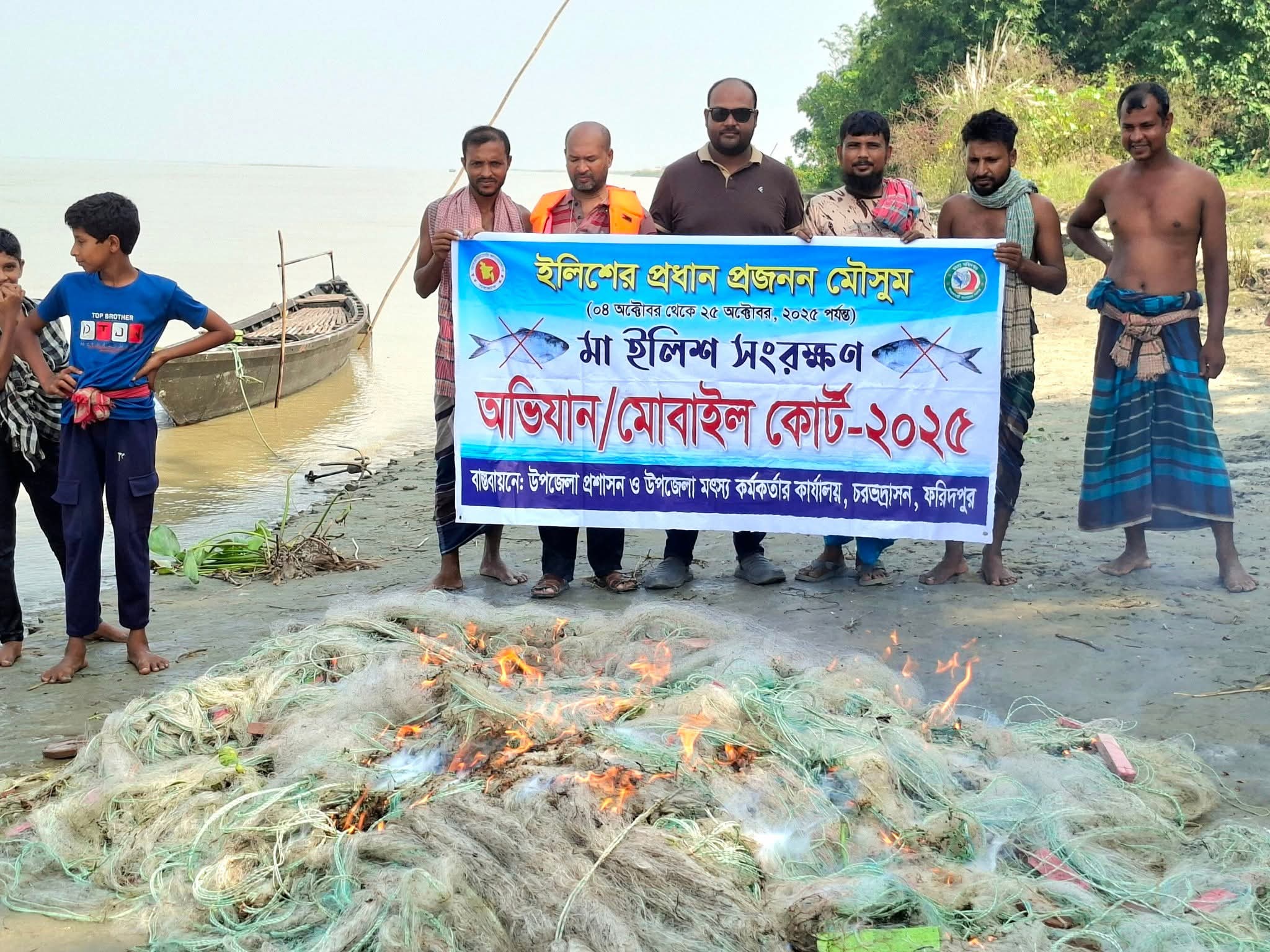 মা ইলিশ রক্ষা অভিযান: চরভদ্রাসন পদ্মায় ২০ হাজার মিটার জাল জব্দ
