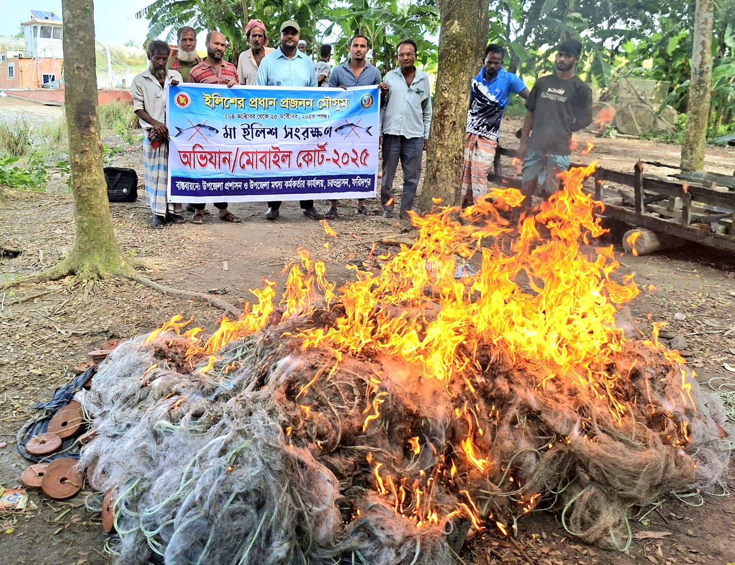 উপজেলা নির্বাহী কর্মকর্তা মনিরা খাতুনের নির্দেশে অভিযান পরিচালনা করেন উপজেলা মৎস্য কর্মকর্তা নাঈম হোসেন বিপ্লব। সকাল থেকে সন্ধ্যা পর্যন্ত চলা এ অভিযানে জব্দকৃত কারেন্ট জাল আগুনে পুড়িয়ে ধ্বংস করা হয়েছে।