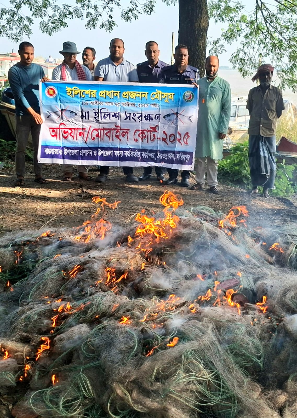 অভিযানে আনুমানিক ১৮ হাজার মিটার অবৈধ কারেন্ট জাল আটক করে পুড়িয়ে বিনষ্ট করা হয়। এছাড়া ১৯ কেজি ইলিশ মাছ জব্দ করে স্থানীয় মাদ্রাসায় বিতরণ করা হয়।