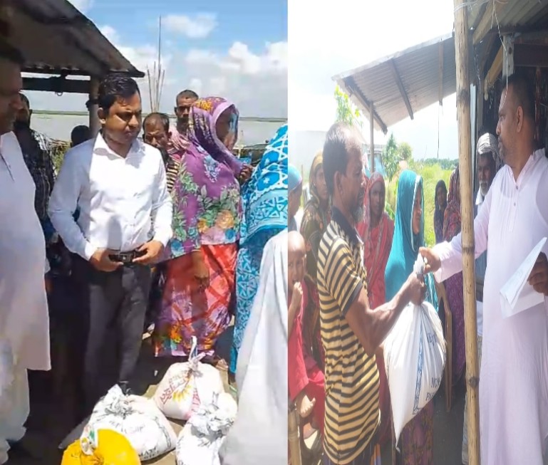 চরভদ্রাসনের চর ঝাউকান্দা ইউনিয়নে বন্যা দুর্গত পরিবারের মাঝে চাল বিতরণ